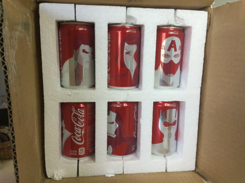Title (ebay affiliate link): Mini Coca Cola Marvel Avengers 6 Pack Cans Iron Man, Capt. America, Ant-Man MORE