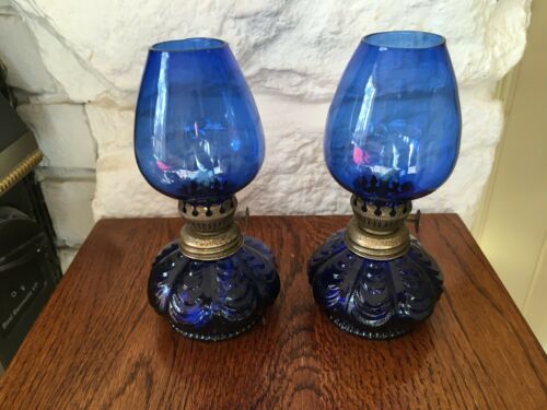 Title (ebay affiliate link): Vintage Style, A Pair Of Small Blue Glass Paraffin Lamps