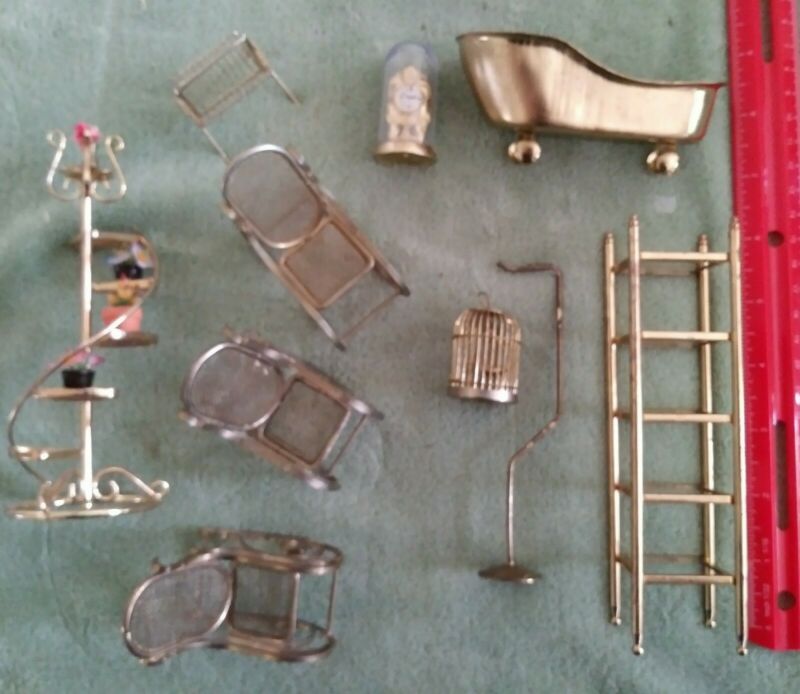 Title (ebay affiliate link): LOT Vintage Metal Dollhouse Furniture Bird Cage with Stand, Spiral Plant Stand+