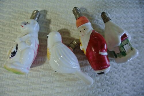 4pc Vintage Milk Glass Light Bulb Figures Christmas Ornaments