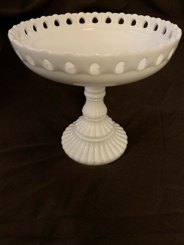 Title (ebay affiliate link): Imperial Glass Compote/Fruit Bowl Pedestal Milk Glass Mid Century Lace Edge