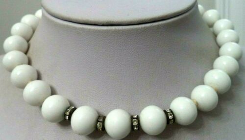 *RARE* VINTAGE SIGNED LAGUNA RHINESTONE & MILK GLASS 15 3/4" NECKLACE!!! G871Q