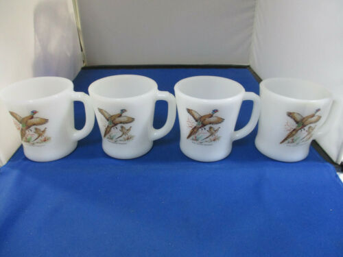 Title (ebay affiliate link): Anchor Hocking Fire King Milk Glass Mugs "Pheasants" Set of 4