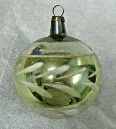 Antique Vtg 1900''s German Feather Tree Mercury Glass Silver Ball Ornament