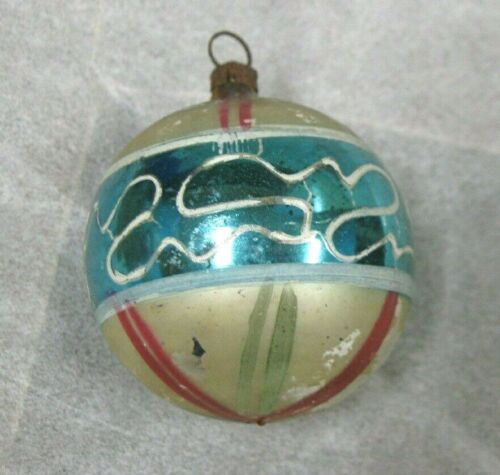 Antique Vtg 1900''s German Feather Tree Mercury Glass Blue & Silver Ball Ornament