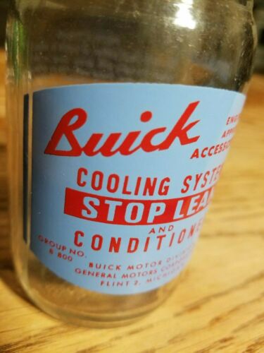 Title (ebay affiliate link): 1940s Buick Stop Leak Glass Oil Jar Can Vintage Gas Farm old Car Garage sign