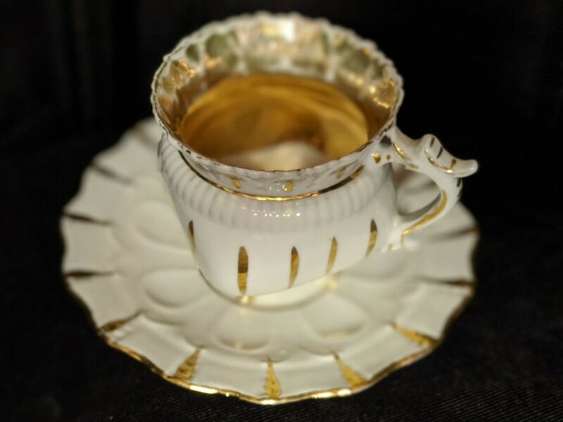 Vintage Japan Royal Sealy Footed Teacup & Saucer White Handpainted Gold Pattern