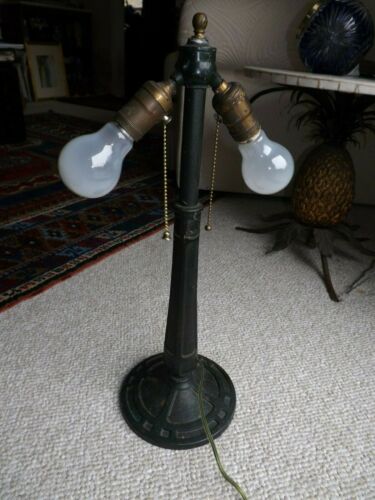 Antique Slag Glass Lamp Base, Cast Iron base & mast.18.3/4 in.+Finial 19.5in.