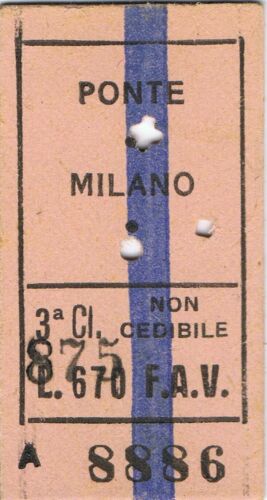 Title (ebay affiliate link): Railway tickets Italy FAV Ponte to Milano third class single 19??
