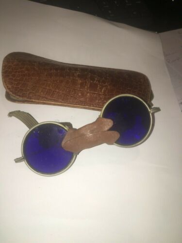 Title (ebay affiliate link): 1900s VINTAGE RARE ROUND COBALT BLUE WELDING GLASSES/GOGGLE W/ leather Case