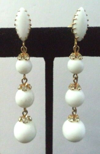 Title (ebay affiliate link): VINTAGE ESTATE HIGH END RHINESTONE & MILK GLASS BEAD 2.5" CLIP EARRINGS!!! G910P