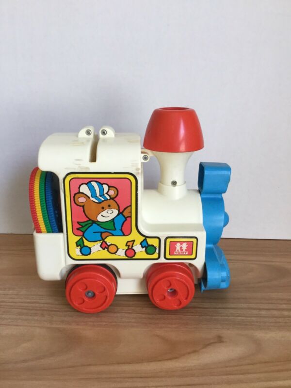 Title (ebay affiliate link): Vintage 1975 Tomy Tuneyville Choo Choo Train With 4 Records