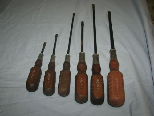 Title (ebay affiliate link): 6 pc Vintage MAC Wood Handle Flat Tip Screwdriver Lot