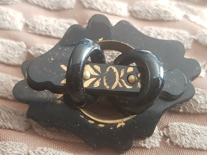 Title (ebay affiliate link): Large Antique Victorian Whitby Jet Forget Me Not puzzle type Mourning Brooch Pin