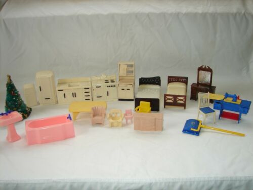 Vintage doll house furniture Ideal Renwal Miniatures lot plus Christmas Tree