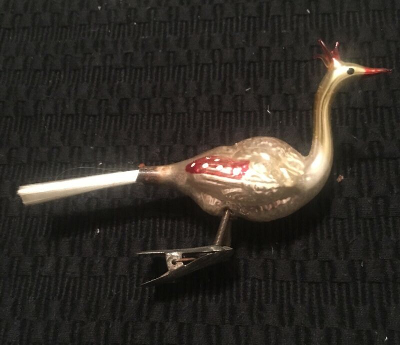 Vintage Mercury glass PEACOCK Bird Clip On Christmas Tree Ornament GERMANY