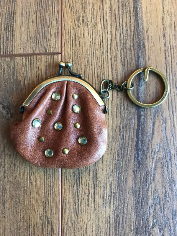 Title (ebay affiliate link): Vintage Fossil Brown Rhinestone Leather Key Chain Change Purse
