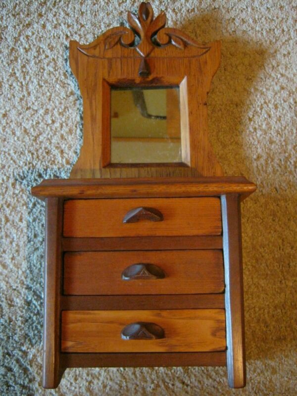 Title (ebay affiliate link): antique carved Miniature oak toy doll dresser with mirror, 18 inch