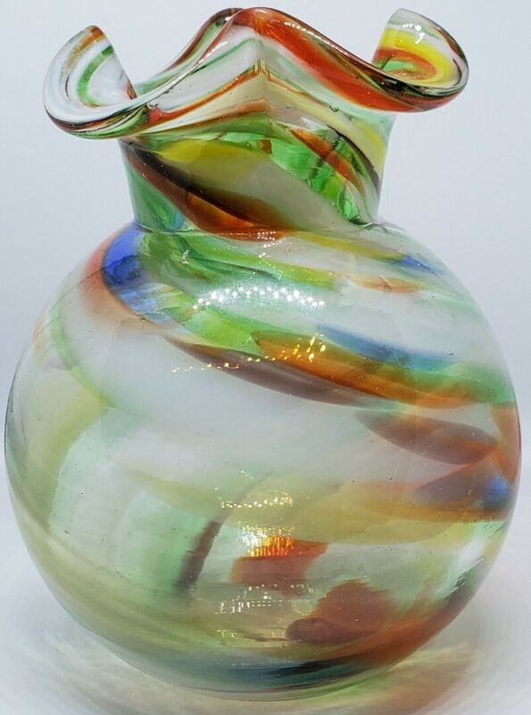 Small Clear Glass Marble Style Ribbon Swirl Vase