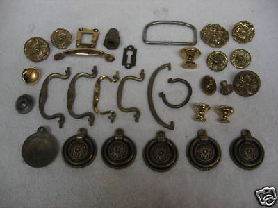 Title (ebay affiliate link): ASSORTED BRASS FURNITURE HARDWARE 31 PCS. MOST ANTIQUE