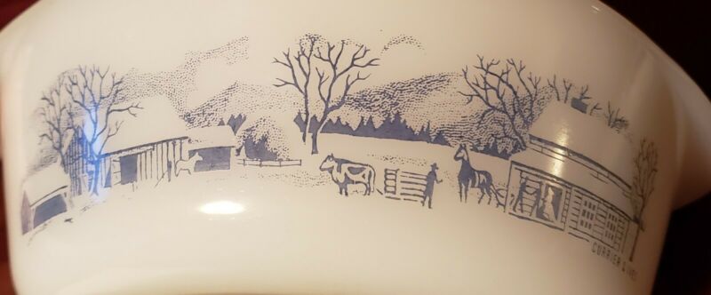 Title (ebay affiliate link): Royal China Currier and & Ives Covered Casserole Glasbake White Milk Glass Blue