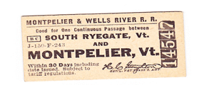 MONTPELIER & WELLS RR PASSENGER TICKET