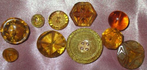 Title (ebay affiliate link): LOT 10 ANTIQUE VICTORIAN & DEPRESSION ERA GLASS BUTTONS - AMBER & YELLOW
