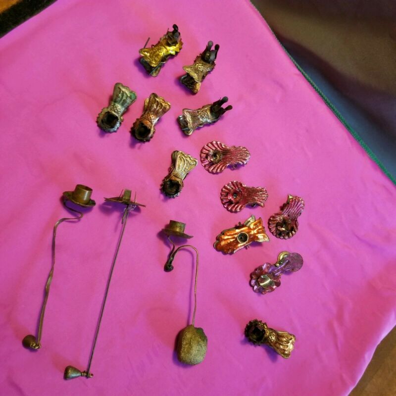 Title (ebay affiliate link): VTG LOT 3 Weighted Holders /12 EMBOSSED Christmas Candle Holders , Feather Tree