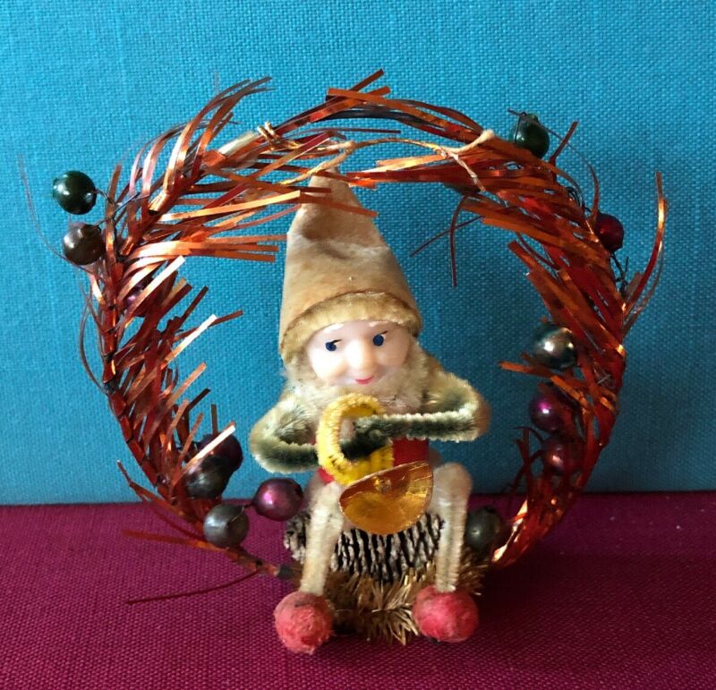 Title (ebay affiliate link): Vintage Japan Foil w Glass Beads & Wire Chennille Elf Trumpet Christmas Ornament