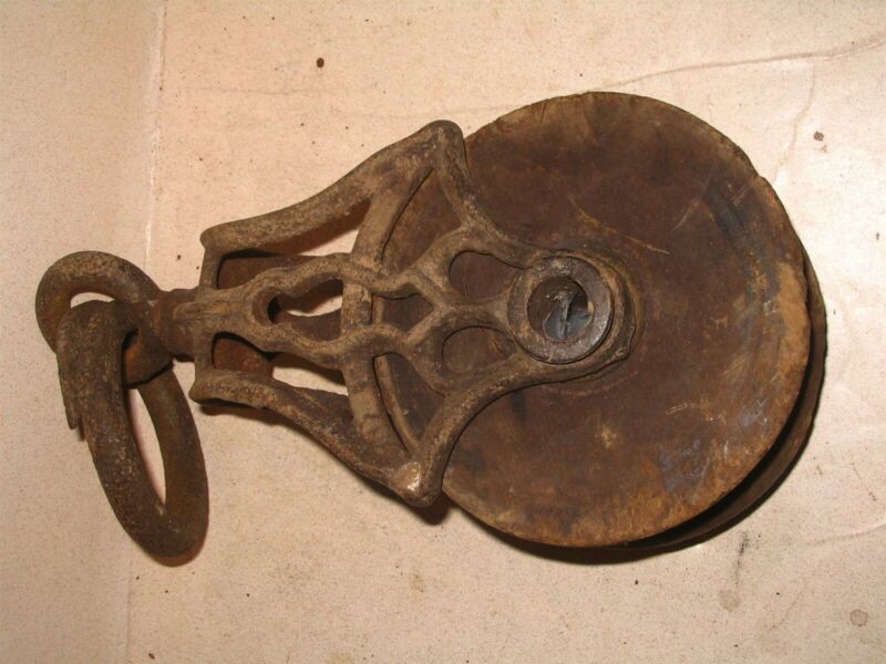 Title (ebay affiliate link): Antique Cast Iron Pulley Hay Trolley Drop 5" Barn Salvage Ornate Beautiful