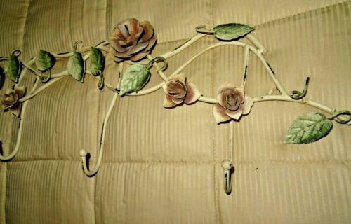 Title (ebay affiliate link): Vintage Tole 5 Hook Metal Hanging Rack Shabby French Country 27.5" L x 8" W