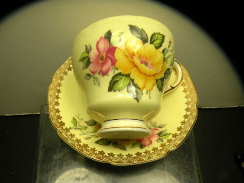 2PC HAND PAINTED PARAGON ENGLAND GOLD TRIM FLORAL BONE CHINA CUP & SAUCER