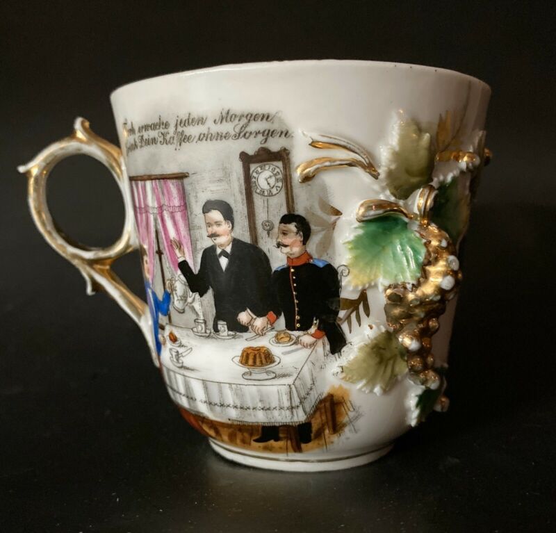 Antique Hand Painted German Cup with German Soldiers & Writing Germany