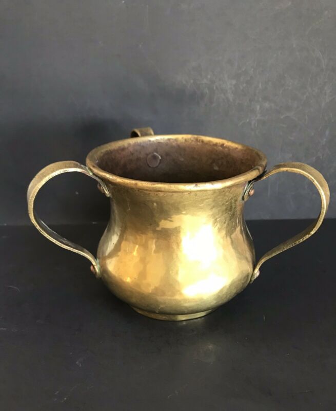 Antique Imperial Russian Brass ThreeHandle Cup Handcrafted Dovetail Construction
