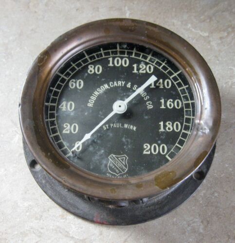 ANTIQUE PRESSURE GAUGE BRASS BEZEL STEAM PUNK