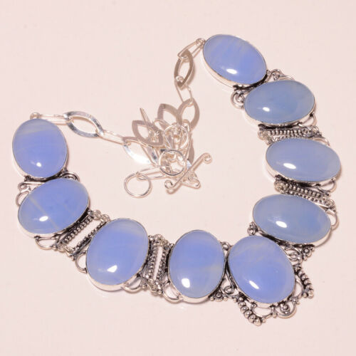 Title (ebay affiliate link): Blue Chalcedony Vintage Style Gemstone 925 Sterling Silver Necklace 18" RD-52