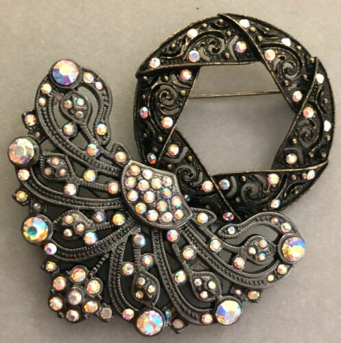 Title (ebay affiliate link): Antique Style - Vintage Dark Silver Toned Metal & AB Rhinestone Pins/ Brooches