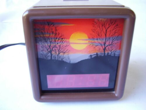 Vintage SPARTUS Sunset Sunrise Night Light Digital Alarm Clock Wood Grain 1970''s