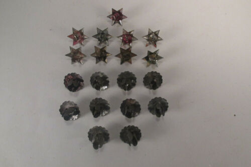 19 Antique Tin Christmas Tree Candle Holders 9 Stars & 10 Flowers, Tack-On Style
