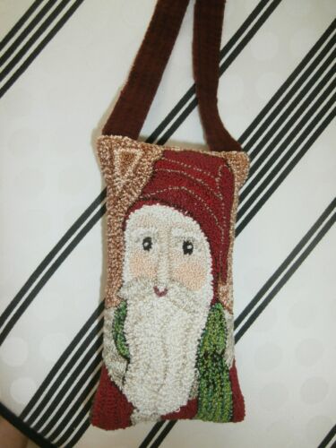 Primitive Punch Needle & wool "SANTA" Christmas cupboard hanging pillow/pin keep