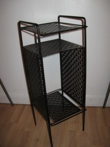 Title (ebay affiliate link): Mid Century Modern Black Lacquer Metal Telephone Stand