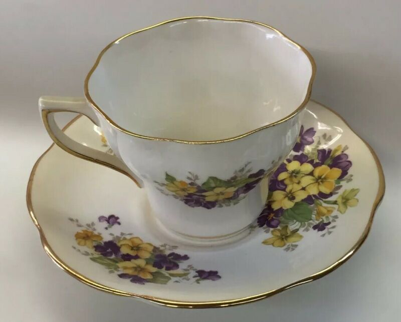 Clare Bone China England Flowers Yellow Purple Tea Cup And Saucer - TCC