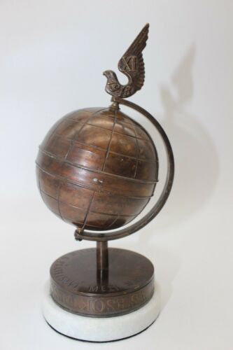 1948 BRONZE & MARBLE GLOBE PAPERWEIGHT XI VSESOKOLSKY SLET V PRAZE