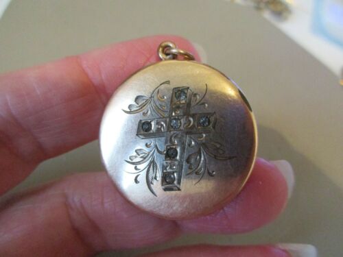 Title (ebay affiliate link): ANTIQUE VINTAGE VICTORIAN ROSE GOLD CRYSTAL CROSS FOB PHOTO LOCKET CHARM PENDANT