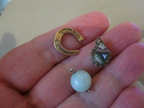 ANTIQUE VINTAGE VICTORIAN GOLD HORSESHOE MICRO MOSAIC JADE FOB CHARM PENDANT LOT