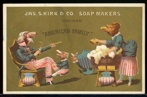AMERICAN FAMILY BALD EAGLE PATRIOTIC VICTORIAN TRADE CARD JAS KIRK SOAP MAKERS