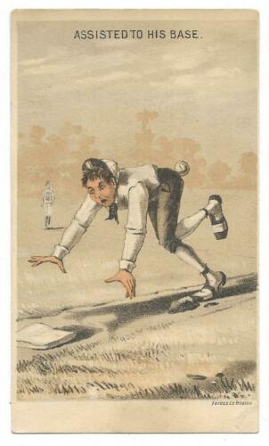 Baseball: 1880''s Trade Card; "Assisted to His Base"; Larger Size