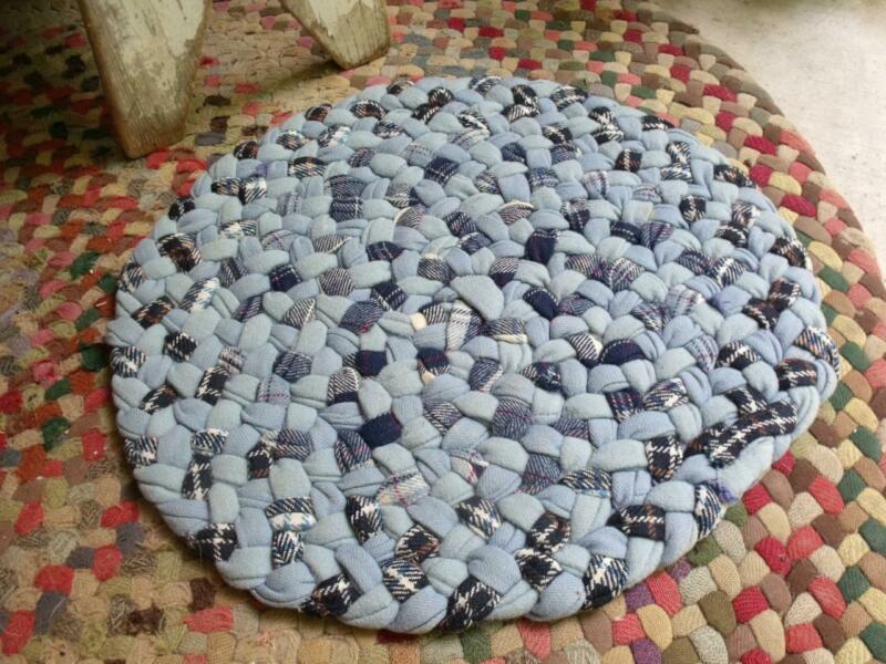 Title (ebay affiliate link): One Primitive Vintage Hand Braided Chair Pad Red White & BLUES 14 3/4"
