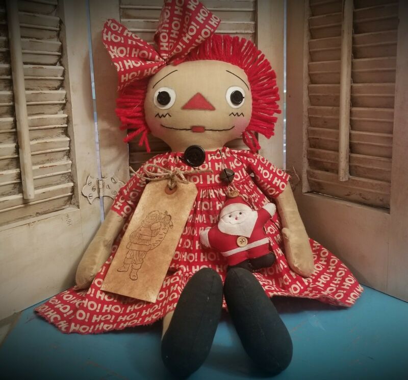 Title (ebay affiliate link): Primitive Raggedy Ann Doll w/ Santa Ornie ~ Annie ~ Christmas ~ Winter~