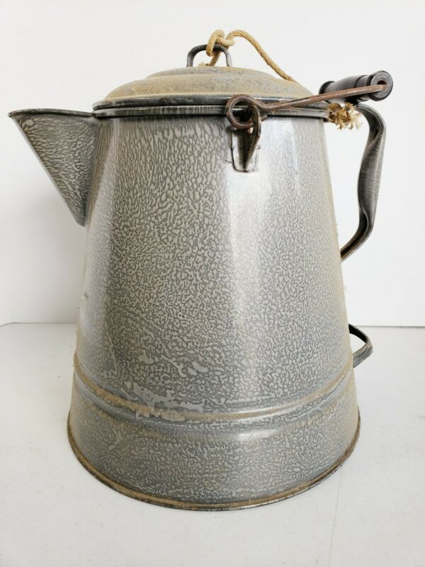 Title (ebay affiliate link): Vintage Granite Enamelware Coffee Pot Extra Large
